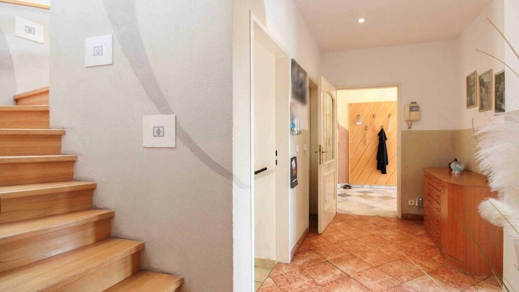 Das Haus bietet fünf helle Zimmer, ein hell gefliestes Hauptbad mit Dusche und Badewanne, eine Einbauküche mit Abstellkammer sowie eine praktische Gästetoilette im Erdgeschoss.