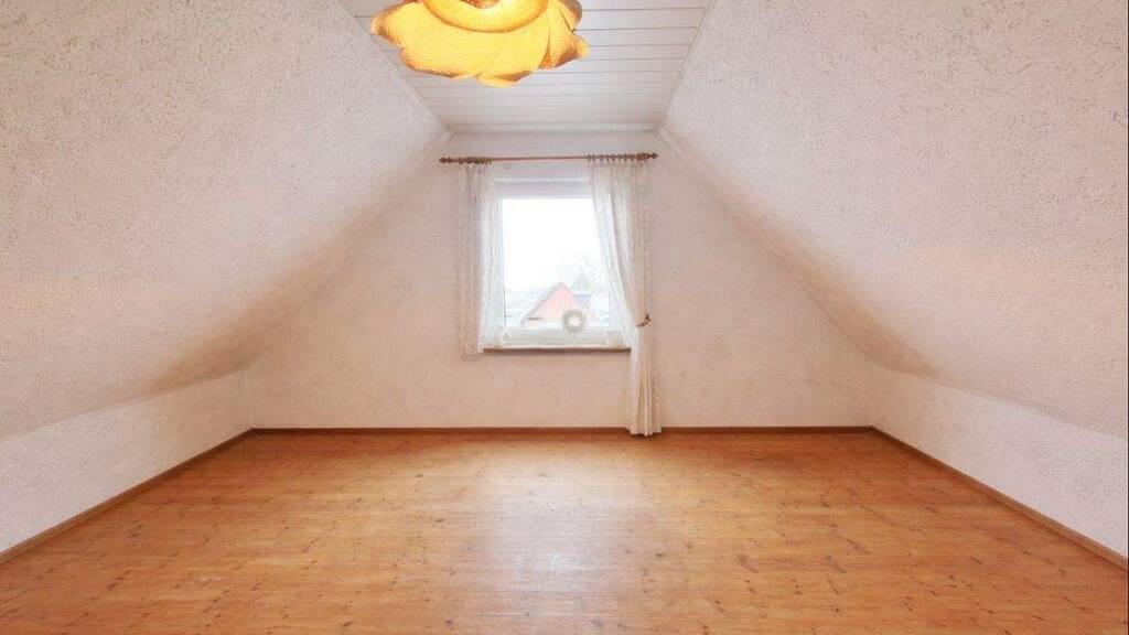 Im Erdgeschoss stehen ein Wohnzimmer, ein Schlafzimmer, eine Küche sowie der Eingangsbereich mit Treppe ins Dachgeschoss zur Verfügung. Das Dachgeschoss bietet zwei weitere Zimmer, die sich flexibel z. B. als Schlaf-, Kinder-, Gäste- oder Arbeitszimmer nutzen lassen.