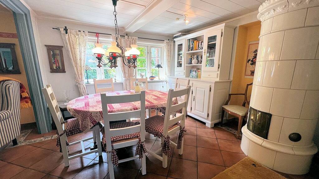 - ortstypische Bauweise mit Rotklinker, Reetdach und weiĂźen Holzsprossenfenstern