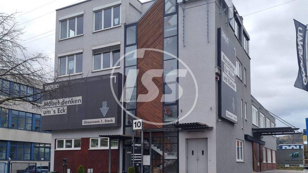In dem viergeschossigen Bürogebäude befindet sich im Erdgeschoss eine Küchenmanufaktur mit Schreinerei und im 1. Obergeschoss ein dazu gehöriger Showroom. Im Hofbereich können 3 PKW-Stellplätze angemietet werden.
