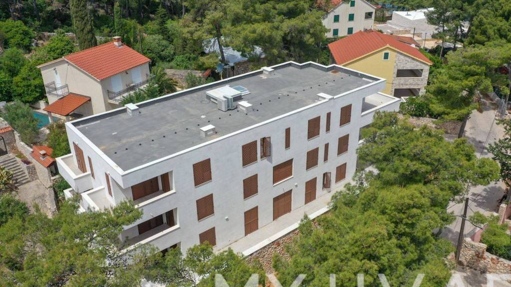 Zum Verkauf steht ein komplett neues Wohngebäude in Jelsa im Stadtteil Vitarnja. Es eignet sich ideal als touristische Kapitalanlage. Das Gebäude umfasst acht Apartments auf drei Etagen, die jeweils modern ausgestattet sind und einen wunderschönen Meerblick bieten.