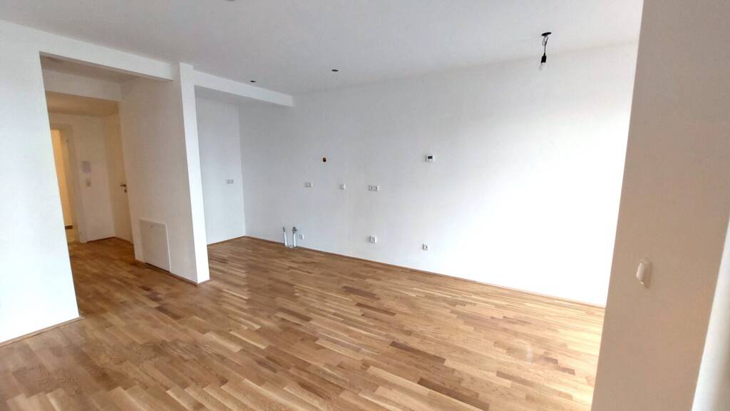 Vorraum, separates WC und Schrankraum geben zusätzlich Platz, um die wesentlichen Bereiche des Lebens strukturiert zu halten. In allen Räumen wird hochwertiger Parkettboden oder moderne Bodenfließen verlegt.