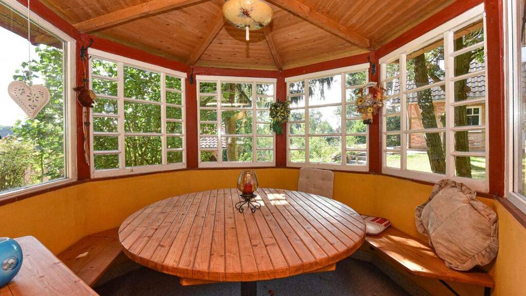 Das Grundstück ist ein wahres Paradies für Naturliebhaber und für Kinder, die hier unbeschwert aufwachsen. Ein Örtchen, an dem man die Natur nicht nur sieht, sondern spürt. Die erhöhte Lage verleiht der Liegenschaft eine besondere Präsenz. Genießen Sie den freien Blick über Wiesen, Felder und die weite norddeutsche Heidelandschaft. Der weitläufige Garten mit altem Baumbestand, verschiedenen Obstbäumen, den Steinmauern und den Zierbrunnen bietet eine atemberaubende Kulisse. Die Terrasse und der Gartenpavillon laden Freunde und Familie zu zauberhaften Stunden im Freien ein, während die Solardusche an warmen Sommertagen für angenehme Erfrischung sorgt.