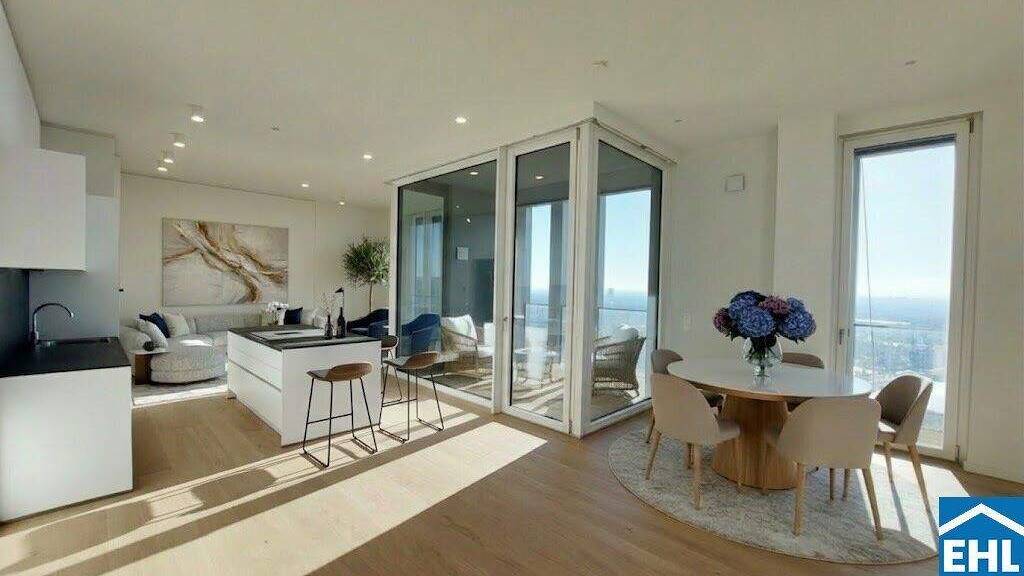 Direkt an der U1-Station Kagran und gegenüber dem Donau Zentrum entsteht ein rund 155 Meter hoher Wohnturm mit 45 Etagen - ein neues Landmark für modernes Wohnen in Wien.