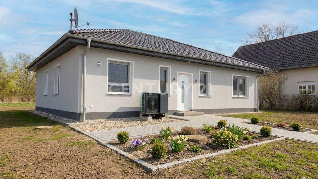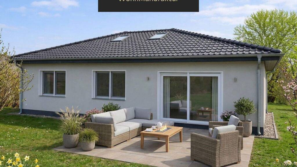 Dieser elegante Neubau-Bungalow in Massivbauweise bietet Ihnen ca. 118 m² Wohnfläche auf einem ca. 1.216 m² großen Grundstück - mit freiem Blick ins Feld. Ein durchdachtes Raumkonzept, hochwertige Ausstattung und die bezugsfertige Ausführung machen dieses Haus zu einem Zuhause zum Wohlfühlen.
