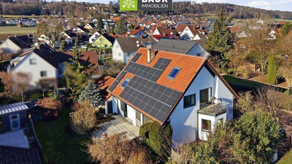 Dieses charmante Einfamilienhaus befindet sich in guter Wohnlage im beliebten Ortsteil Staig, der zum Landkreis Ravensburg gehört. Die Immobilie befindet sich in einer verkehrsberuhigten Anliegerstraße (30er-Zone) und bietet damit ein ideales Wohnumfeld für Familien. Eine gut sortierte Dorfbäckerei ist fußläufig erreichbar und bietet Einkaufsmöglichkeiten für den täglichen Bedarf. Kindergarten und Bushaltestelle sind ebenfalls fußläufig erreichbar. Die nächstgelegenen weiterführenden Schulen in Ravensburg und Weingarten sind über den Schulbus in wenigen Fahrminuten zu erreichen. Die Stadt Ravensburg mit ihrer umfassenden Infrastruktur erreicht man zudem in nur etwa 10 Autominuten. Das im Jahr 1986 massiv erbaute Haus steht auf einem sonnigen Eckgrundstück mit ca. 563 m². Die ca. 240 m² Wohnfläche verteilen sich auf 7 Zimmer plus ein Studio im Dachspitz. In den letzten Jahren wurden zahlreiche Modernisierungen durchgeführt, die das Haus deutlich aufgewertet haben. Modernisierungen im Überblick: . Einbauküche: 2013 . Bad im Dachgeschoss: 2013 . Umstellung auf Gas-Zentralheizung: 2014 . Heizeinsatz Kachelofen mit Wasserkissen: 2014 . Teilweiser Austausch der Rollläden: 2015 . Innentüren (Glas): 2016 . Aluminiumverkleidung Fenster und Balkontüren: 2017 . Haustüre mit Fingerprint-System: 2017 . Wallbox (Mennekes, 11?kW): 2020 . PV-Anlage mit Speicher: 2021 . Dachfenster mit Verdunkelungsrollos: 2021 . Innentüren inkl. Zargen: 2021 . Enthärtungsanlage: 2022 . Wärmepumpe: 2023 . Markise Terrasse: 2024 . Neuer Bodenbelag Hobbyraum UG: 2024 Bereits beim Betreten des Hauses empfängt Sie das Erdgeschoss mit einem einladenden Flur, dessen italienischer Natursteinboden eine warme Atmosphäre schafft und sich harmonisch in die angrenzenden Wohnräume fortsetzt.