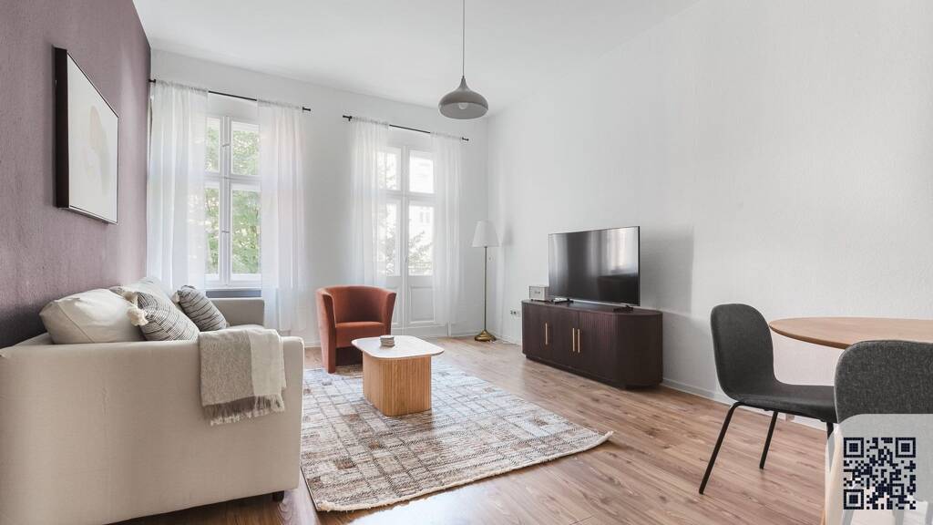 Wie bei jedem Blueground Wohnung finden Sie einen durchdacht gestalteten Raum mit schönen Möbeln. und eine voll ausgestattete Küche in diesem Zwei-Schlafzimmern Immobilie. Und dank unserer hochwertigen Matratzen können Sie sich entspannen, weil Sie sich immer wie zu Hause fühlen werden. Wenn Sie Lust auf etwas Spaß haben, können Sie die Berlin -Atmosphäre genießen oder sich die Unterhaltung mit dem kabellosen Premium-Lautsprecher oder dem Smart-TV direkt nach Hause holen.