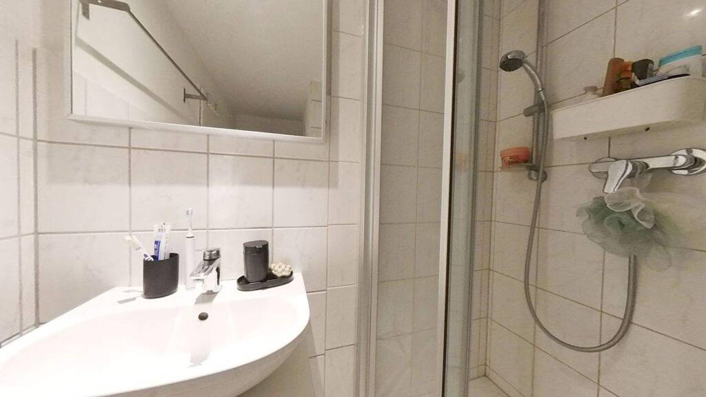 Das Badezimmer ist mit einer Dusche ausgestattet und verfügt über einen Waschmaschinenanschluss, was den Wohnkomfort zusätzlich steigert und besonders bei langfristigen Mietverhältnissen geschätzt wird.