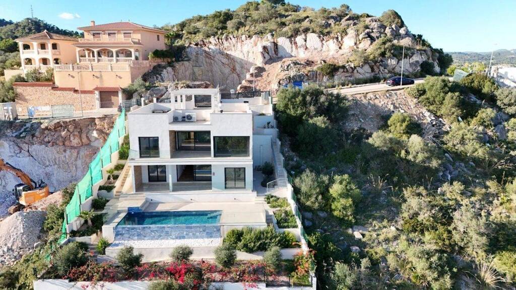 Villa de diseño de nueva construcción con espectaculares vistas al mar sobre la bahía de Cala Millor y vistas panorámicas al paisaje de Son Servera....Precio 1.950.000..Superficie habitable aprox. 256 metros cuadrados...Parcela aprox. 460 metros cuadrados...Dormitorios 4..Baños: 4..Ubicación: Son Servera, Mallorca...Este moderno chalet situado en la codiciada zona residencial de Son Servera combina un diseño purista con unas vistas excepcionales. Desde casi todas las estancias principales de la casa se disfruta de unas amplias vistas sobre la bahía de Cala Millor, la costa y las suaves colinas de los alrededores. Da la impresión de que el mar comienza justo delante de la puerta de casa....La villa ha sido concebida como un refugio luminoso para personas que valoran la arquitectura elegante, el confort y la amplitud. Las grandes ventanas, los espacios abiertos y las numerosas terrazas crean una interacción fluida entre el interior y el exterior. En días despejados, la vista se extiende kilómetros y kilómetros sobre el paisaje hasta el horizonte sobre el mar....Distribución...La superficie habitable se distribuye en dos niveles, a los que se accede a través de la zona de entrada en la planta superior....Planta superior..En la planta superior se encuentra la sala principal con salón y comedor, así como una moderna cocina abierta. Las grandes ventanas y el acceso directo a la terraza cubierta crean una impresionante sala de estar con vistas permanentes al mar y a la naturaleza. En los días soleados, la vida se desarrolla casi por completo entre la sala de estar, la cocina y la terraza al aire libre...En este nivel también hay un amplio dormitorio doble con baño en suite, un aseo de invitados y un práctico cuarto de servicio...La terraza cubierta está orientada de manera que se puede disfrutar tanto de la vista de la bahía como de las colinas circundantes. Por la mañana se puede contemplar aquí el amanecer sobre el mar y por la tarde la suave luz sobre el paisaje....Planta baja..En la planta baja de la casa hay otros tres dormitorios dobles, todos con baño en suite. Las grandes ventanas proporcionan mucha luz y se abren directamente al jardín y a la terraza de la piscina...Una segunda sala de estar con grandes ventanales conecta el interior, el jardín y la piscina de forma elegante. Aquí se crea un espacio perfecto para invitados, familia o como salón independiente con acceso directo a la zona exterior....Zona exterior, piscina y vistas...La zona exterior está diseñada de tal manera que las vistas panorámicas ocupan un lugar destacado. La amplia terraza se funde con el jardín y conduce a la piscina infinita de agua salada, con una superficie de unos 27 metros cuadrados...Desde la piscina, las zonas para tomar el sol y las zonas de descanso, la vista se extiende libremente sobre la bahía de Cala Millor. La línea clara de la piscina infinita refuerza la impresión de que el agua y el mar se funden entre sí...La combinación del mar, el cielo y el verde paisaje montañoso que rodea Son Servera hace de este lugar un refugio perfecto para las personas que aprecian por igual la tranquilidad, la amplitud y el paisaje....Equipamiento y comodidad...La villa está equipada con materiales de alta calidad y ofrece tecnología doméstica moderna para garantizar el confort durante todo el año. Entre otras cosas, incluye.. Aire acondicionado.. Calefacción por suelo radiante.. Acristalamiento aislante Climalit y ventanas de PVC.. Armarios empotrados.. Suelos de parqué en las zonas de estar.. Sistema de alarma.. Trastero y zona de servicio.. Plazas de aparcamiento para dos vehículos en la parte superior de la casa...