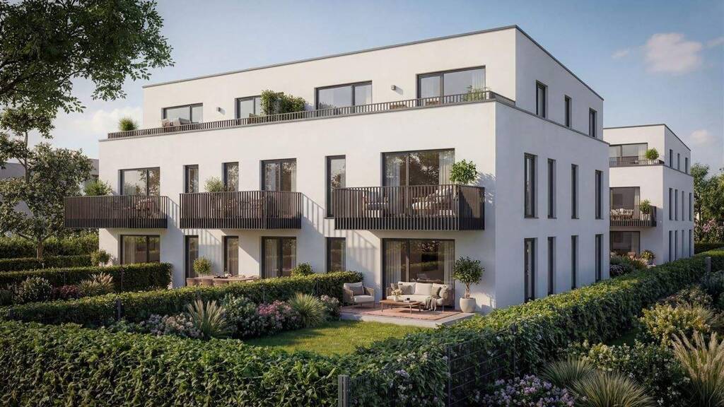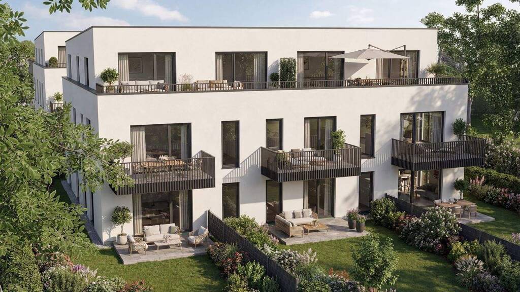 Im Alleinauftrag vermieten wir ein hochwertiges, modernes und architektonisch sehr anspruchsvolles Wohn-Ensemble, bestehend aus zwei hintereinander liegenden dreigeschossigen Häusern mit durchdachter Raumaufteilung und jeweils nur acht Wohneinheiten. Es handelt sich um Zwei- bzw. Dreizimmer-Wohnungen von ca. 59 bis 92 Quadratmetern Wohnfläche. Allesamt mit Terrasse/Garten, Balkon oder Dachterrasse.