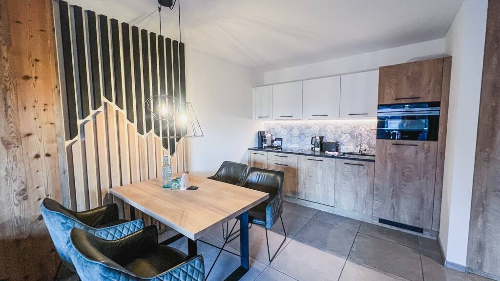 Das Apartment ist hochwertig eingerichtet und verfügt über ein gemütliches Schlafzimmer, einen Wohn- und Essbereich mit Küche und ein Badezimmer, welches mit Dusche und Badewanne ausgestattet ist.