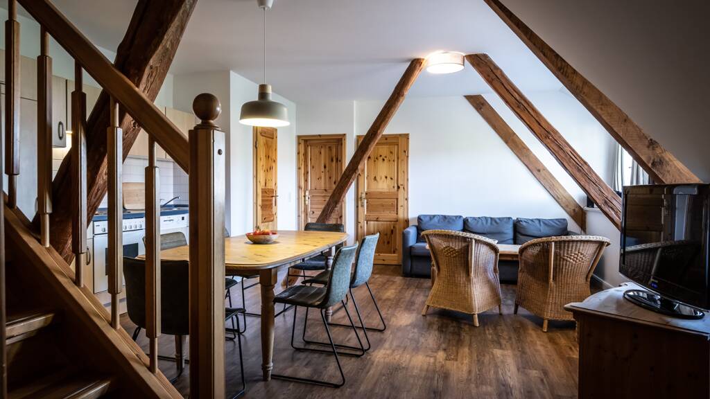 2 der Schlafräume befinden sich - als Maisonette - gemütlich im Spitzboden.