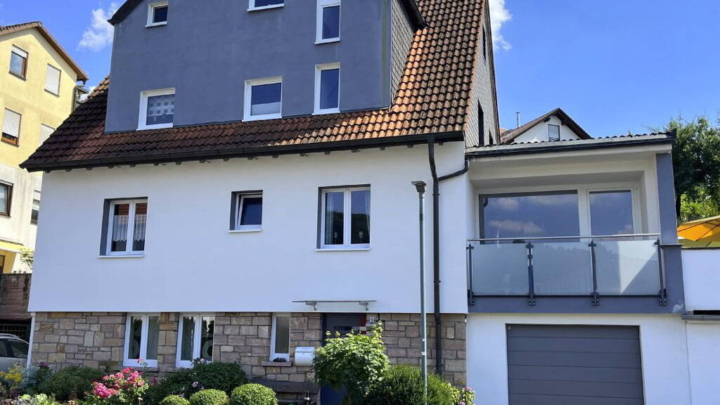 Raumaufteilung: Untergeschoss: Vielseitig nutzbarer Hobbyraum oder Büro mit eigenem WC. Zudem befinden sich hier Keller, Wasch-/Trockenraum, Heizung und die Garage. Dieser Bereich ist ebenerdig zugänglich. Erdgeschoss: Derzeit vermietete 3-4 Zimmer-Wohnung mit ca. 106 m² Wohnfläche, großer überdachter Terrasse und Balkon. Obergeschoss & Dachstudio: Hauptwohnung über zwei Ebenen mit ca. 100 m² Wohnfläche. Moderne Einbauküche (im Kaufpreis enthalten), Zimmer, Bad, offener Wohn-Essbereich und große Terrasse mit direktem Zugang zum Garten. Im Dachstudio befinden sich Schlafzimmer mit großem Badezimmer und Ankleide sowie Platz für eine Leseecke oder einen Arbeitsbereich. Die besondere Raum- und Deckengestaltung verleiht dieser Einheit einen einzigartigen Charme. Historie und Modernisierungen: Baujahr: Ursprünglich 1953/54 in massiver Bauweise errichtet. Erweiterungen: 1973 Ausbau über der Garage; 1997 Ausbau des Dachstudios mit charakteristischem Giebel- und Tonnendach. Ein Hingucker und prägende Bauweise, das für hohe Räume und Raumwunder sorgt. Sanierungen: Teile der Außenfassade wurden 2011 und 2014 mit einem 10 cm Wärmedämmverbundsystem versehen; die vermietete Wohnung im Erdgeschoss wurde 2015/2016 saniert. Heizung: Moderne Gas-Zentralheizung (VIESSMANN) mit Warmwasserbereitung, erneuert im Jahr 2022. Energieausweis: Wird derzeit erstellt. Ausstattung: Böden: Hochwertige Holztreppen, Bodenbeläge aus Holz, Fliesen oder Laminat. TV-Empfang: SAT-Anlage vorhanden. Kabelanschluß Nebenkostenabrechnung: Verbrauchserfassungsgeräte für Heizung, Wasser und Strom zur separaten Abrechnung der vermieteten Wohnung. Dieses gepflegte Zweifamilienhaus kann innerhalb weniger Wochen übernommen werden. Für eine Besichtigung stehen wir Ihnen gerne zur Verfügung.