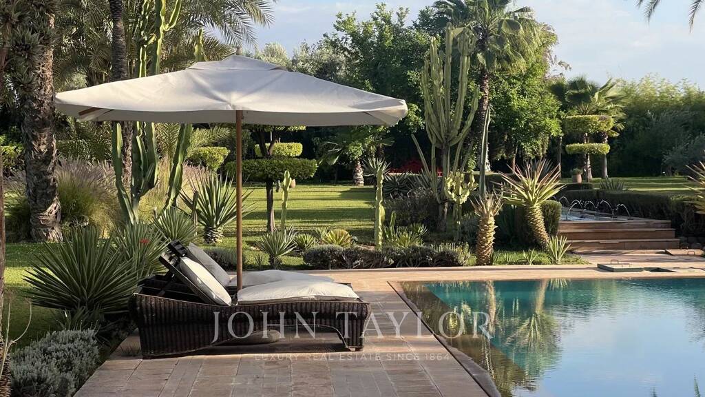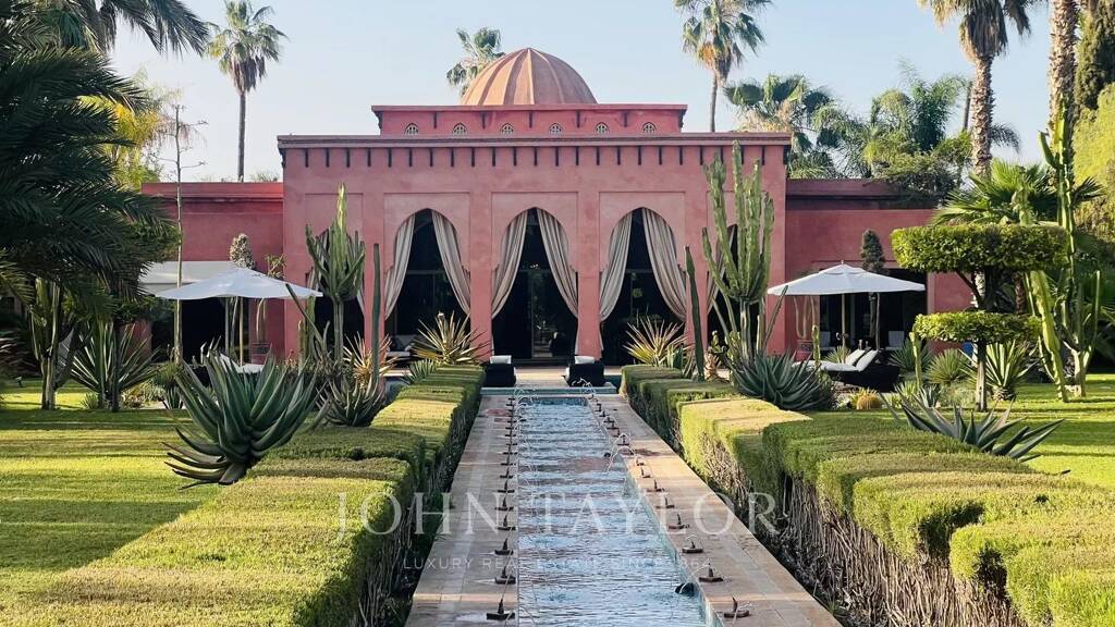 A 20 mn du golf d'Amelkis et du golf Royal, cette propriété de plain-pied d'environ 600m² est organisée autour d'un magnifique patio dans l'esprit d'un RIAD traditionnel. Elle comprend de vastes espaces de réception offrant des volumes remarquables et de grandes hauteurs sous plafond, 4 suites spacieuses avec terrasse privée, 1 cuisine parfaitement équipée, 1 salle de sport, 1 logement de gardien..