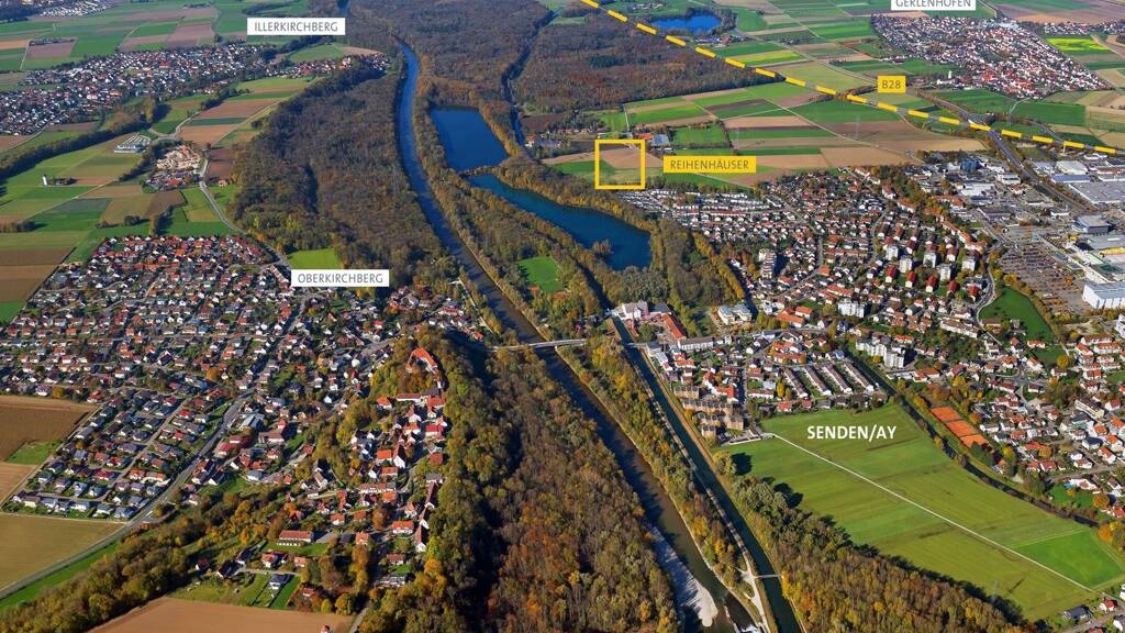 Die Reihenhäuser Untere Au im Fledermausweg Senden-Ay entstehen am Rande des Naherholungsgebiets nahe der Iller und dem Freudenegger Baggersee. Die Umgebung mit viel Grün lädt zu ausgedehnten Spaziergängen, auspowernden Joggingrunden, ausgiebigen Radtouren und Erholung direkt vor der Haustüre ein. Hier lernen Kinder noch das Bäumeklettern und Indianerspielen!