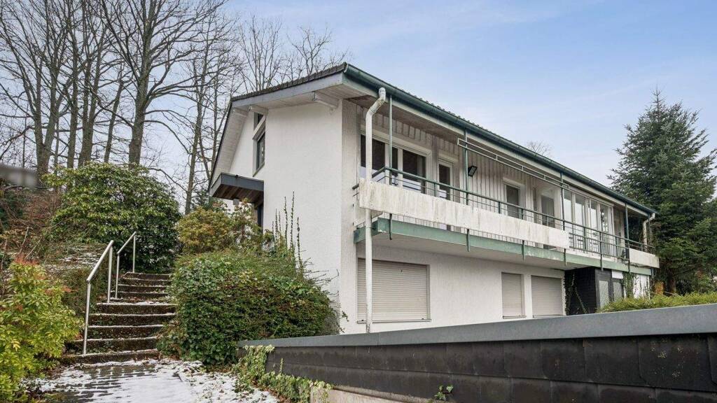 Die Einliegerwohnung des Hauses ist sowohl über die Hauptwohnung als auch über einen separaten Außeneingang zu erreichen. Aufgrund der Hanglage verfügt die Wohnung über ausreichend Fenster und bietet mit ihren drei Zimmern, der separaten Küche, dem Wannenbad sowie einem eigenen Gartenanteil eine geräumige Wohnatmosphäre.