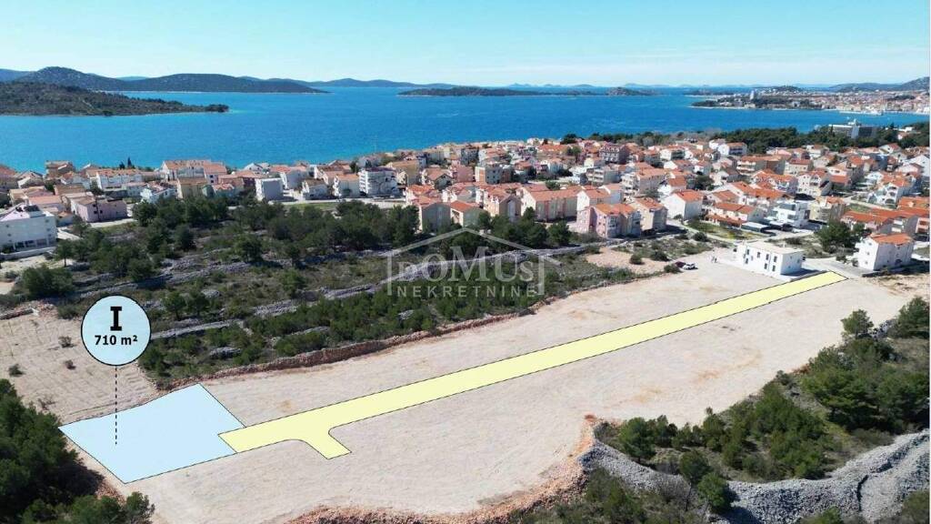 Srima, ruhige Umgebung, 550 m vom Strand Lovetovo entfernt. Das Baugrundstück hat eine Fläche von 710 m2, ist regelmäßig geformt, geräumt und eingeebnet, nicht eingezäunt. Öffentliche Infrastruktur (Strom, Wasser, Straßenbeleuchtung) und eine Asphaltstraße befinden sich ca. 120 m vom Grundstück entfernt. Gemäß dem gültigen Stadtplan der Stadt Vodice liegt das Grundstück in der M-Zone - Markierung 1.4. Es besteht die Möglichkeit ein Einfamilienhaus bis max. 4 Wohneinheiten zu bauen.