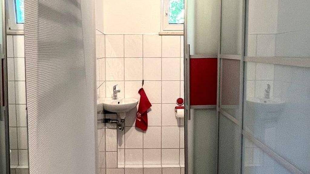 Der Eingangsbereich ist modern gefliest und mit einem Einbauschrank nach Maß versehen worden, ebenso das Gäste-WC, das mit einer schicken Schiebetür erneuert wurde.
