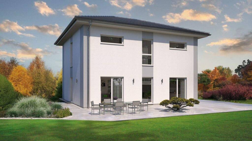 Großzügig, zeitlos-elegant und bis ins kleinste Detail durchdacht - das zeichnet unsere Stadtvilla 16 aus. Auf über 180 m², verteilt auf zwei Ebenen, bietet sie reichlich Raum zum Leben, Arbeiten und Entspannen. Der zentrale Treffpunkt für Familie und Freunde ist der großzügige Wohn-Ess-Koch-Bereich mit rund 50 m². Große Fensterfronten ermöglichen einen direkten Zugang zum Garten und sorgen für einen maximalen Lichteinfall. Besonders praktisch: Direkt an die Küche schließen sich eine Speisekammer und der geräumige Hauswirtschaftsraum an. Im Erdgeschoss befinden sich zudem ein komfortables Arbeitszimmer und ein Gäste-WC. Über den offenen Dielenbereich gelangt man ins Obergeschoss, wo sich der Rückzugsort für die Familienmitglieder befindet. Die Eltern genießen hier eine Wohlfühloase mit einem großen Schlafbereich, einem separaten Ankleidezimmer und einem angrenzenden Badezimmer mit Badewanne, Dusche und WC. Gegenüber befindet sich das Reich der Kinder, wo zwei geräumige Zimmer durch ein eigenes Bad voneinander getrennt sind. Abgerundet wird das Raumangebot durch einen praktischen Abstellraum.