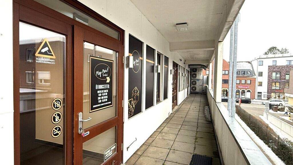 Angeboten wird eine vielseitig nutzbare Gewerbefläche im 1. Obergeschoss eines Wohn- und Geschäftshauses. Die Fläche wurde bisher als Spielhalle/Spielothek genutzt und hat noch eine bestehende Konzession für 12 Spielautomaten. Die Einheit kann über das Treppenhaus oder einen Personenaufzug erreicht werden.