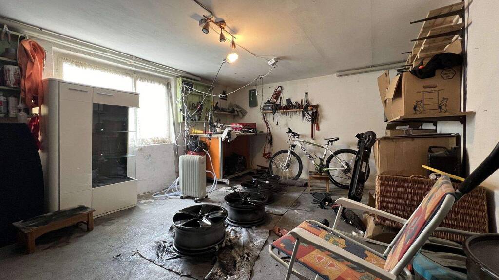 Fahrräder, Kisten oder einzulagernde Gegenstände lassen sich im ebenfalls vorhandenen Kellerraum aufbewahren. Der große Keller bietet viele Möglichkeiten zum Ausbauen. Eine Garage für Ihr Auto steht Ihnen außerdem zur Verfügung. Gleich dahinter gibt es noch die Möglichkeit ein weiteres Auto auf den Außenstellplatz zu parken.