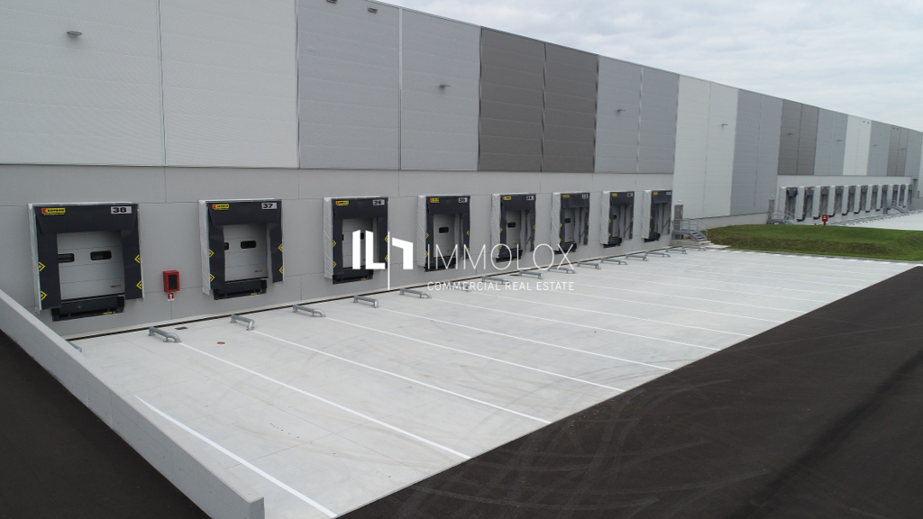40 Rampen 4 ebenerdige Tore Sprinkleranlage 24/7 Betrieb Wärmepumpe DNGB-Gold Zertifizierung Bewegungsmelder für die Beleuchtung e-Ladesäulen für Pkw PV-Anlage Hallen komplett umfahrbar BREEAM Excellent Zertifizierung Hallenhöhe: 12 m UKB WGK 3 Folie