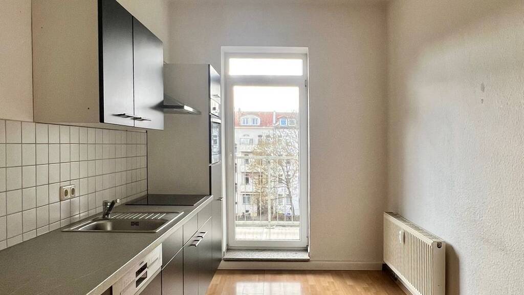 Die Wohnung selbst befindet sich im 3. Obergeschoss und unterteilt sich in 3 separate Zimmer. Alle drei Zimmer sind mit Laminatboden ausgestattet. Die Küche ist mit einer Einbauküche versehen und das Bad verfügt über eine Badewanne und ein Fenster. Darüber hinaus steht ein großzügiger Balkon zur Verfügung.