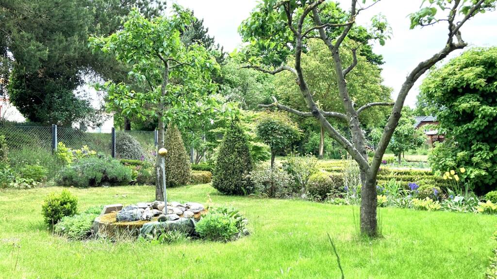 Der Garten wurde mit viel Liebe zum Detail gestaltet und lädt mit seiner grünen Vielfalt zum Entspannen, Spielen oder Gärtnern ein - ein echtes Paradies für Groß und Klein. Die gepflegten Außenanlagen unterstreichen den wertigen Gesamteindruck dieses besonderen Anwesens und machen es zu einem idealen Zuhause mit Charakter und vielen Möglichkeiten.