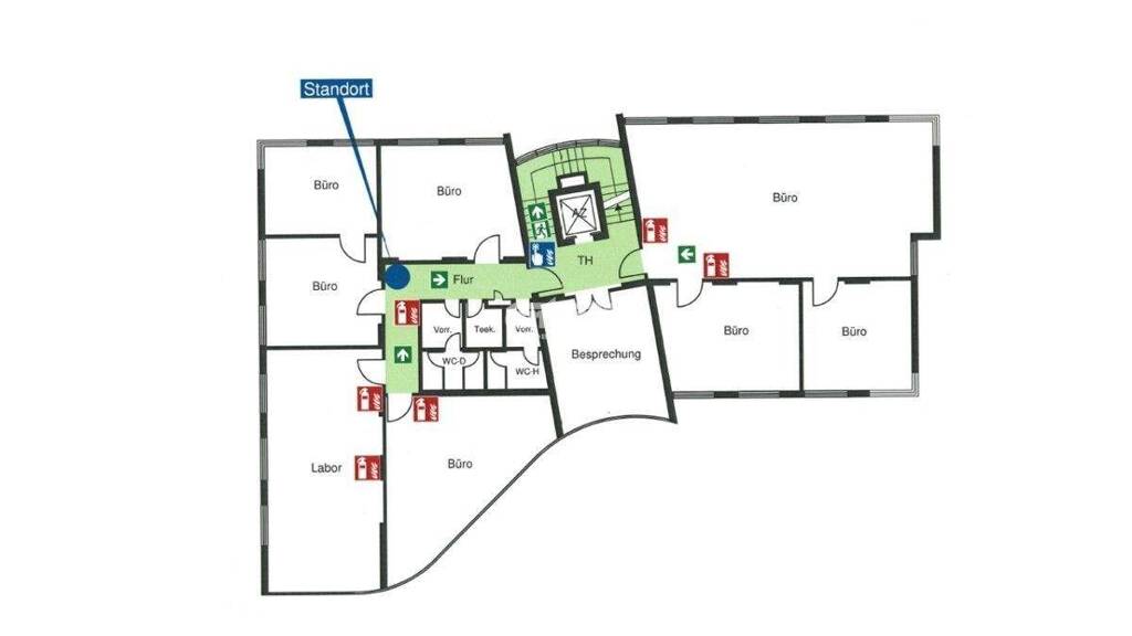 Jedes Obergeschoss verfügt über eigene Teeküchen sowie separate Sanitärbereiche, wodurch eine komfortable Nutzung gewährleistet ist. Ein Personenaufzug ermöglicht den barrierearmen Zugang zu allen Ebenen. Die Büroflächen sind zudem mit Klimaanlagen und vorhandener Datenverkabelung ausgestattet und bieten damit ideale Voraussetzungen für moderne Arbeitsplätze. Ergänzt wird das Angebot durch 21 PKW-Stellplätze direkt am Gebäude, die Mitarbeitern und Besuchern eine bequeme Erreichbarkeit ermöglichen.
