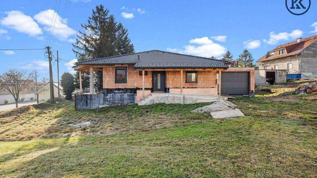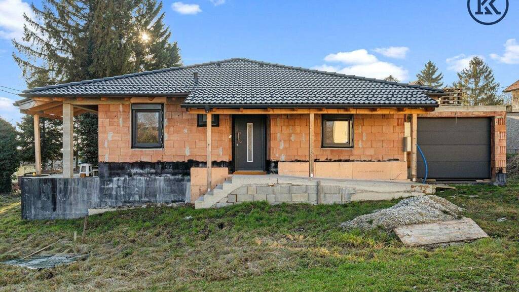 Dieser charmante Bungalow befindet sich derzeit im Rohbauzustand und bietet Ihnen die seltene Möglichkeit, Ihr zukünftiges Zuhause ganz nach Ihren Vorstellungen zu gestalten. Auf einer Wohnfläche von etwa 89 m² finden Sie ein Vorzimmer, eine separate Toilette, eine offene Wohnküche mit Zugang zu einem kleinen Balkon, zwei Schlafzimmer, ein Badezimmer mit WC sowie ein zusätzliches Kinderzimmer. Ergänzt wird das Haus durch einen Technikraum und eine Garage von ca. 18 m². Das großzügige Grundstück mit insgesamt 879 m² bietet Ihnen darüber hinaus viel Raum für einen Garten, Freizeitaktivitäten oder individuelle Gestaltungsideen. Da das Gebäude noch nicht fertiggestellt ist, haben Sie die Freiheit, Fassade, Dämmung, Bodenbeläge, Isolierung und Innenausstattung ganz nach Ihren Wünschen zu wählen und so ein Haus zu schaffen, das perfekt zu Ihnen passt.