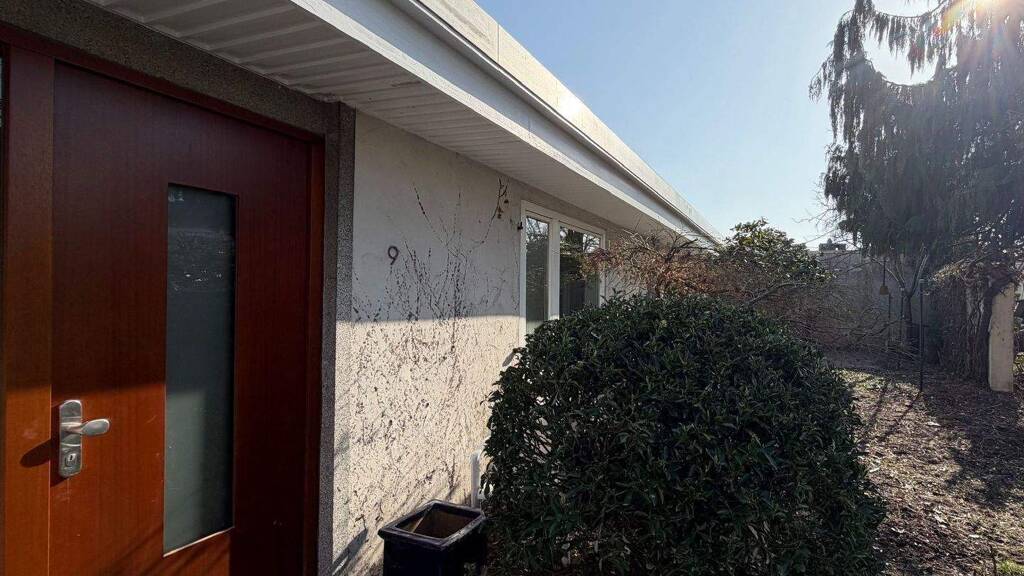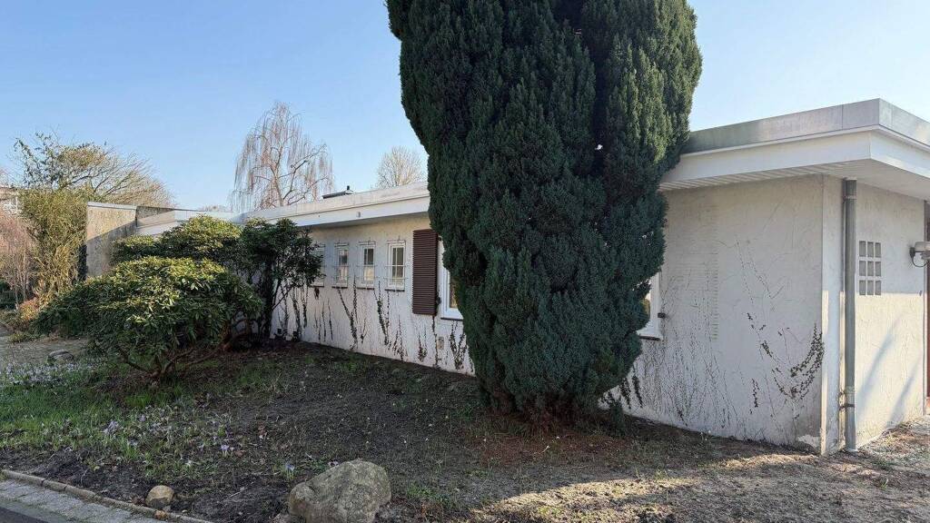 Die optimal nach Süden ausgerichtete Immobilie wurde 1961 in massiver Bauweise auf einem ca. 620 m² großen Grundstück errichtet. Die Gesamtfläche beträgt ca. 187 m², die sich auf ca. 140 m² reine Wohnfläche und ca. 47 m² Nutzfläche verteilen. Sie betreten diesen außergewöhnlichen, komplett ebenerdigen Bungalow durch eine neue Eingangstür.