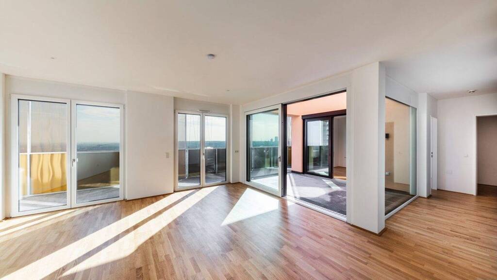 Auch außerhalb der Wohnung sind zahlreiche Features und Extras im Angebot: Ein Fitnessraum für Cardio und Krafttraining, ein Wellnessbereich mit Sauna und Dampfbad, Gemeinschaftsräume mit Küchen, ein Laundry-Room mit Waschmaschinen und Wäschetrocknern, Gemeinschaftsräume, Hobbyräume sowie eine großzügige Terrasse mit Schattigen Plätzen, Kinderspielplatz, und eine Strecken-Laufbahn für sportliche Bewohner. Das alles mit beeindruckendem Ausblick über Wien.