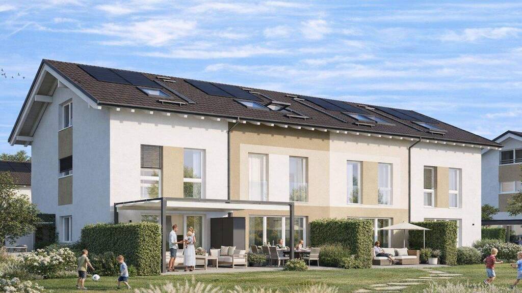 Das Mittelreihenhaus mit ca. 150 m² Wohnfläche, einem Südgarten mit Terrasse und 2 PKW-Stellplätzen bietet alles was eine Familie zum Glück braucht: Großzügige Fensterflächen schaffen helle, lichtdurchflutete Wohnräume. Der Garten mit Terrasse erweitert das Wohnangebot und lädt zum Entspannen, Gärtnern, Feiern und Spielen ein. Das Dachgeschoss ist voll ausbaufähig und individuell gestaltbar - ideal für ein Elternschlafzimmer mit Bad, Büro, Hobbyraum oder Gästezimmer. Der große Keller bietet ausreichend Stauraum und Platz für Hobby, Sport und Wellness. Sonderwünsche sind je nach Bauphase möglich: z.B.: ein größeres Badezimmer, Kachelofen, ausgebautes Dachgeschoss. Eine Photovoltaikanlage auf dem Dach senkt die Energiekosten und sorgt für energieeffizientes Wohnen in Kombination mit Fernwärme und Fußbodenheizung. Für Ihre PKWs stehen ein Carport und ein Außenstellplatz, mit Vorbereitung für E-Mobilität (Leerverrohrung) zur Verfügung.