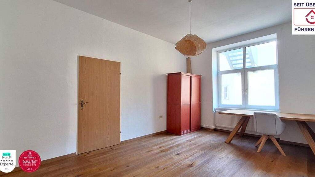Die Wohnräume sind mit hochwertigem Echtholzboden ausgestattet, während Küche, Vorzimmer sowie die Fußböden im Nassbereich verfliest sind.