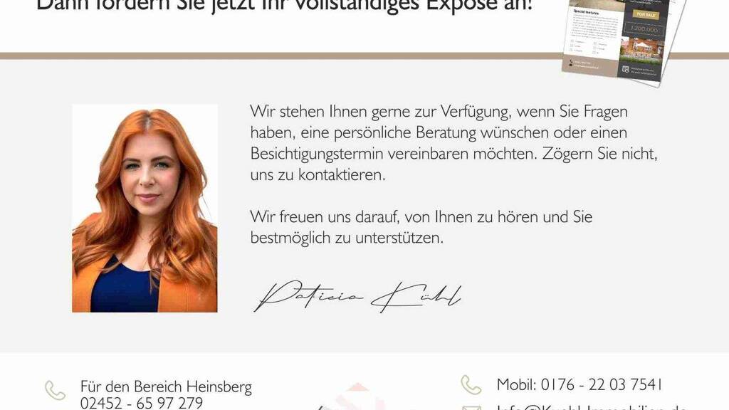 Mit Abschluss eines notariellen Kaufvertrags wird eine Käuferprovision in Höhe von 3,57?% inkl. gesetzlicher MwSt. auf den Kaufpreis fällig, verdient und zahlbar an Kühl Immobilien. Weitere Informationen siehe Provisionshinweis.