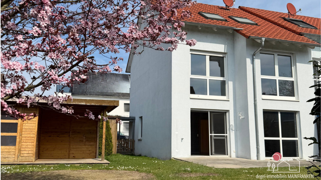 Reiheneckhaus in ruhiger Wohnlage von Kitzingen mit ca. 131 m² Wohnfläche inkl. Dachausbau und insgesamt 6 Zimmern. Die Immobilie ist voll unterkellert, sofort beziehbar und bietet ein eingewachsenes, gut nutzbares Grundstück mit Südterrasse, Gartenhaus mit überdachtem Freisitz sowie Carport.