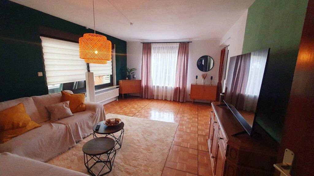 Praktische Annehmlichkeiten wie Waschmaschine und Trockner stehen Ihnen im Keller zur Verfügung. Das Haus liegt in einer ruhigen Gegend und verfügt über einen bezaubernden Wintergarten mit Balkon. Auf dem Grundstück finden Sie vier kostenlose PKW-Stellplätze sowie eine Garage. Haustiere sind erlaubt und ebenfalls kostenfrei willkommen.