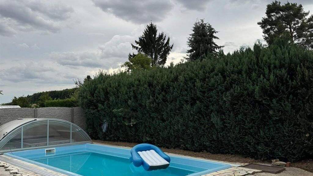 Das großzügige Grundstück lädt zum Entspannen und Verweilen ein. Ein besonderes Highlight ist der eigene Pool, der an warmen Tagen für Abkühlung sorgt und den Außenbereich zu einer kleinen privaten Wohlfühloase macht.