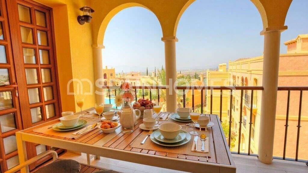 Kurzbeschreibung Die traditionellen mediterranen Stil Wohnungen befinden sich in Pulpi, Spanien, in einer Gemeinschaft mit zugewiesenen Parkplätzen und einem großen Gemeinschaftspool mit Sitzbereichen. Objekt Traditionelle Wohnungen im mediterranen Stil in einem exklusiven Resort in Pulpi