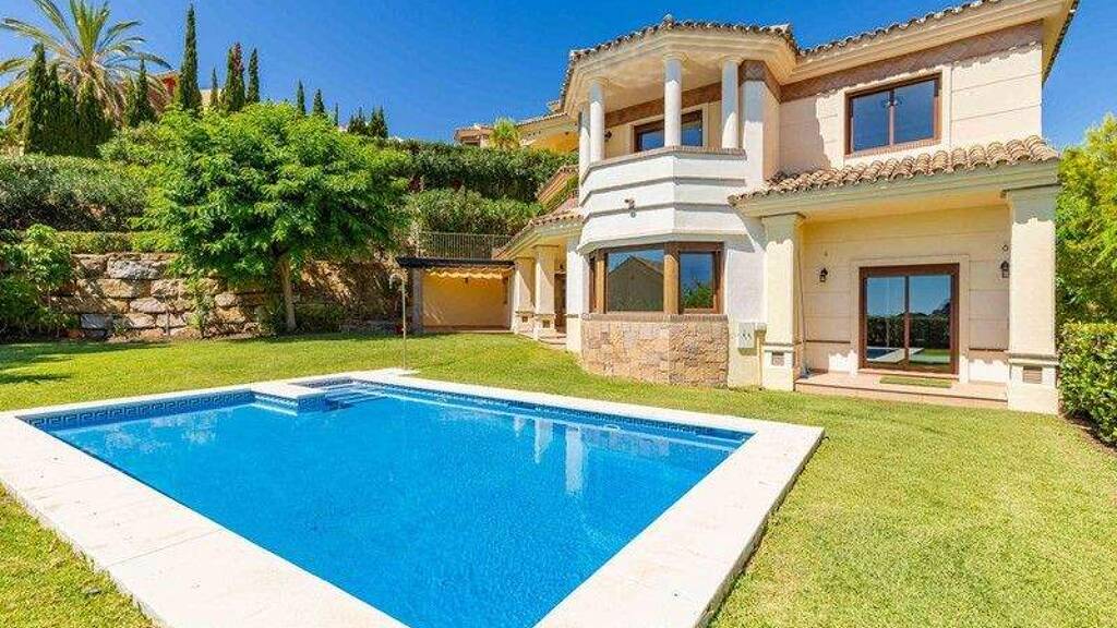Set on a 1,000 m2 plot, the villa is framed by mature, landscaped gardens and enjoys multiple terraces for lounging and dining. The private pool is positioned to make the most of the south-east orientation, capturing the morning and early afternoon sun. From the garden and terraces you can enjoy open views over the golf course, Mediterranean Sea, mountains, gardens and pool.