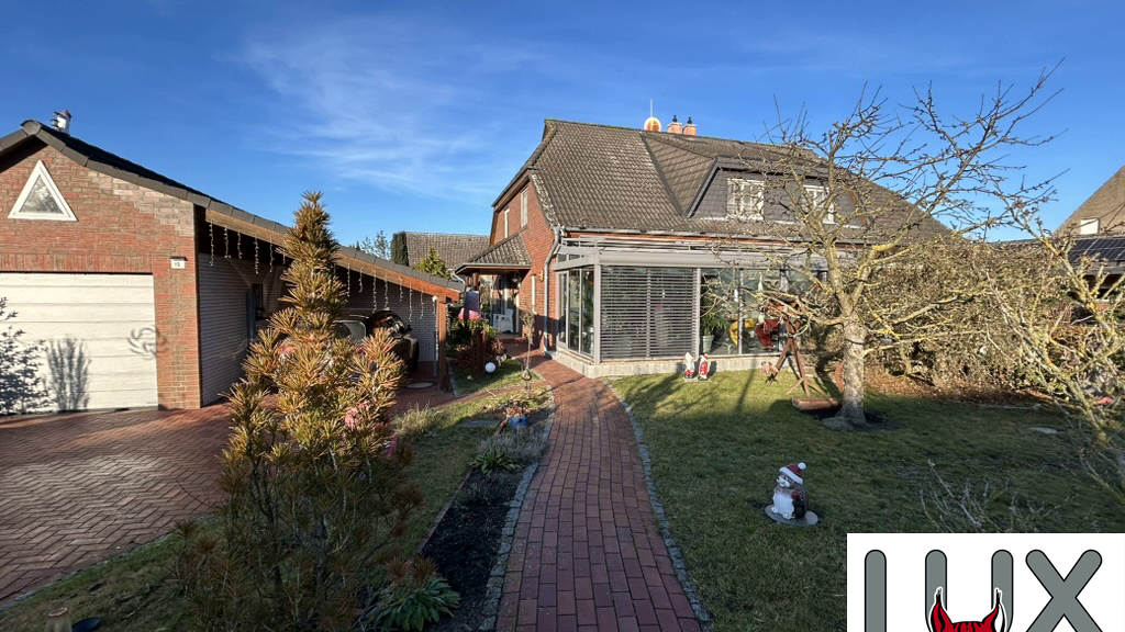 - Doppelhaushälfte in Massivbauweise ( 17,5cm KS+ Wärmedämmung + Vollklinker ) - Baujahr 1992 - 2020 umfassend modernisiert und erweitert - ca. 140qm Wohnfläche Raumaufteilung: EG: Wohnzimmer, Wintergarten, Küche, HWR, WC DG: Schlafzimmer, 2 Kinderzimmer, Bad Spitzboden: Gästezimmer Erschließung: Wasser und Abwasser zentral, Elektro, Gasanschluss, Gartenwasseranschluss, Telefon, Glasfaser, SAT-TV, Nebengelass: - in Massivbauweise ( Klinkerfassade) - Garage ( elektr. Tor), - Lagerfläche im Spitzboden, - Fahrradraum. - Carport, - große, überdachte Sitzterrasse, - überdachter Haueingangsbereich, Grundstück: - komplett eingefriedet, - alle Zuwengungen mit Pflasterklinker ausgepflastert und mit Naturstein eingefasst, - angelegter Garten mit Obstbäumen, Ziersträuchern etc.