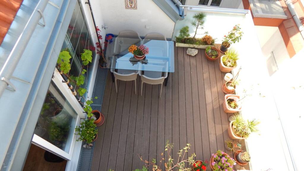 ca. 106 m² Wfl + ca. 16 m² mit zwei Terrassen + Kellerabteil + großer Weinkeller und großer Abstellraum für die Dachbewohner.