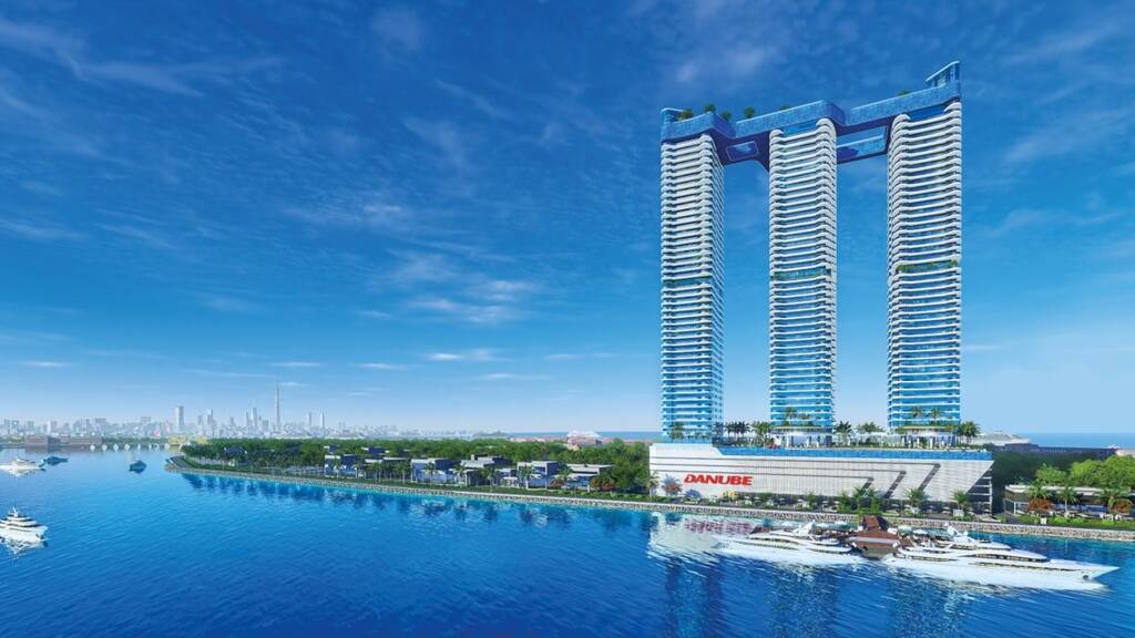 Eingerahmt von den Gewässern der Dubai Maritime City,