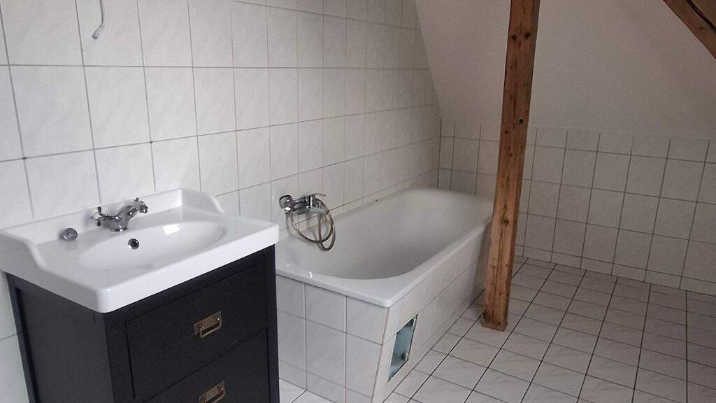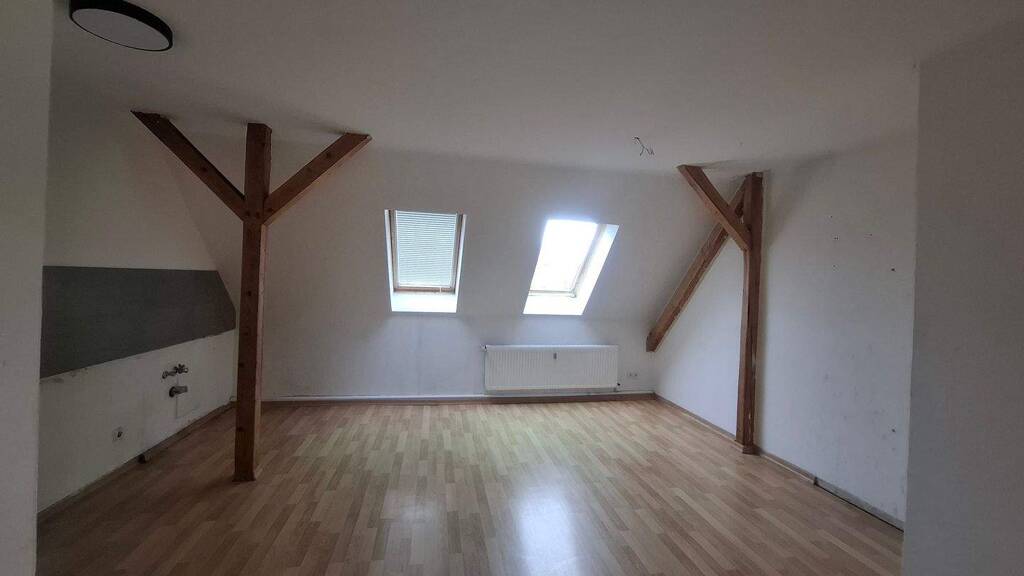 Die angebotene 3 Raumwohnung befindet sich im Dachgeschoss eines sanierten Mehrfamilienhauses ohne Fahrstuhl. Aufgeteilt ist diese in ein wunderschönes großes Wohnzimmer, von dem man in die nachträglich abgegrenzte, separate Küche kommt, ein Kinderzimmer, ein Tageslichtbad sowie ein großzügiges Schlafzimmer. Offene Balken verleihen der Wohnung ihren Charme.