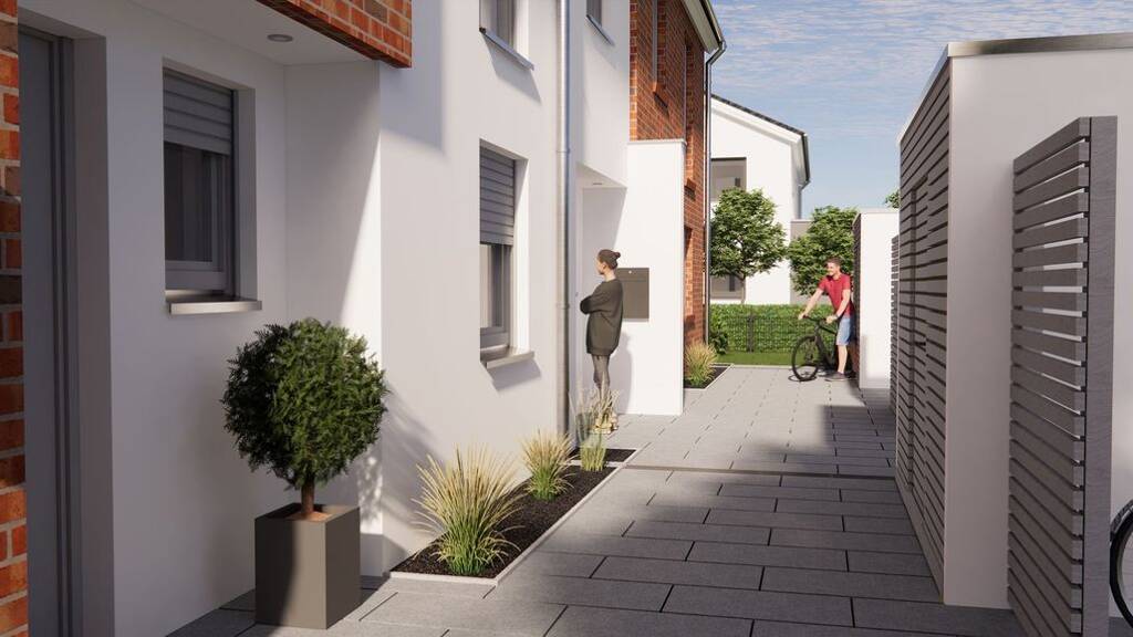 In der Magdalene-Beck-Straße im Ortsteil Horst entstehen zwei moderne Neubauten mit insgesamt sechs energieeffizienten Stadthäusern – jedes mit eigenem Garten, einer Garage, einem Abstellraum und einem zusätzlichen Stellplatz.