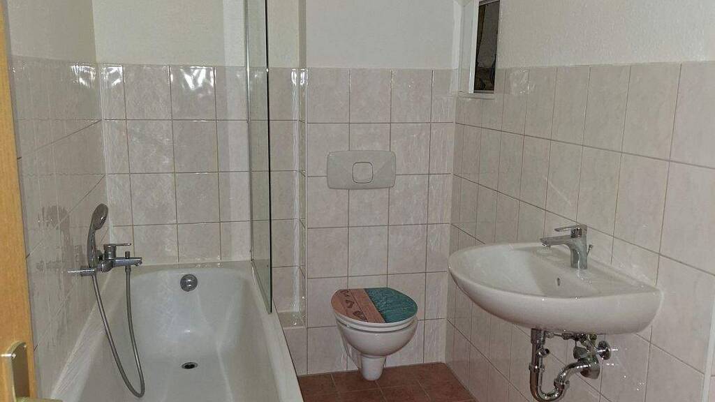 Sie ist hell und geräumig geschnitten. Das Bad ist mit einer Wanne ausgestattet. Die Wohnung ist malermäßig vorgerichtet und mit Bodenbelag in Holzoptik ausgestattet.