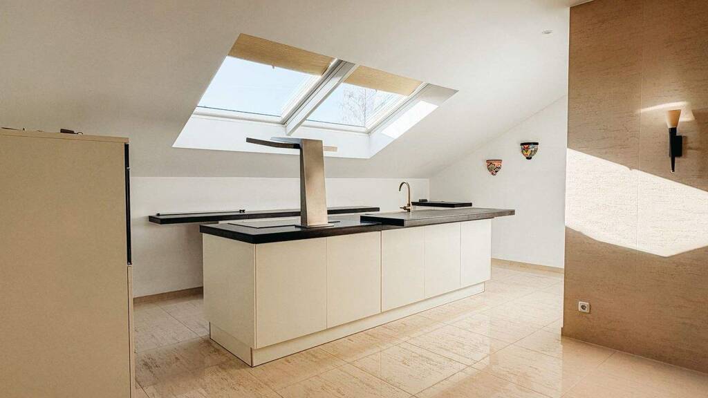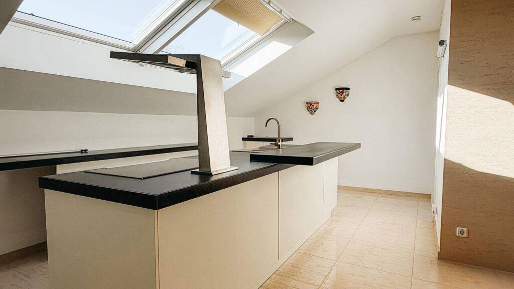 Alle Dachfenster lassen sich komfortabel per Fernbedienung steuern und schließen sich bei Regen automatisch. Die Beheizung erfolgt über eine moderne Gas-Zentralheizung, welche auch die Warmwasseraufbereitung übernimmt. Die Gastherme wurde im Jahr 2021 erneuert. In der gesamten Wohnung ist zudem eine Fußbodenheizung installiert.