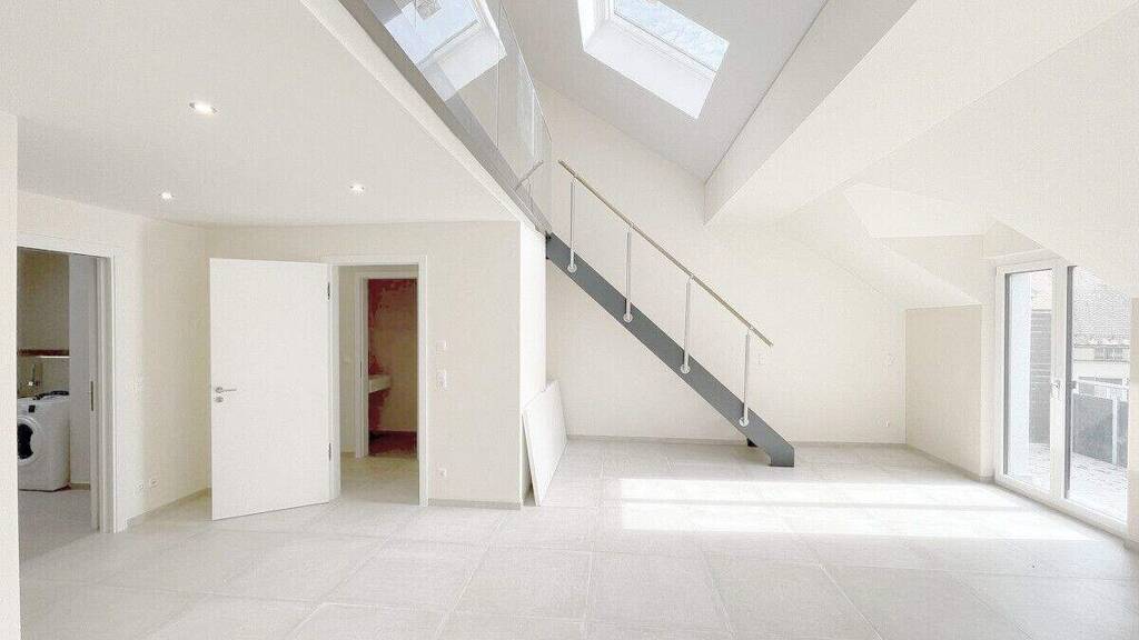 Die wunderschöne und lichtdurchflutete sowie besonders großzügige 2,5-Zi.-Maisonette-Wohnung befindet sich im Dachgeschoss eines ganz neuen modernen Mehrfamilienhauses in der attraktiven Stadt Wolfratshausen direkt im grünen historischen Gebiet bei der Floßlände neben der Altstadt. Das Mehrfamilienhaus wurde in Niedrigenergiebauweise mit nur 6 Wohneinheiten errichtet. Die Maisonette-Wohnung erstreckt sich auf ca. 111 m² und verfügt über einen sehr schön konzipierten Grundriss über zwei Ebenen, der für eine sehr großzügige Raumnutzung sorgt. Die Wohnung ist optimal für Einzelpersonen und Paare sowie als Home-Office oder Büro geeignet. Sie erreichen die Wohnung barrierefrei und leicht und bequem mit dem Lift oder über das großzügige und helle Treppenhaus. Beim Betreten der Wohnung begrüßt Sie eine mit ca. 5 m² recht geräumige Diele. Von der Diele aus gelangt man vorbei an dem ca. 2 m² großen Gäste-WC in den ca. 48 m² großen, hellen Wohn-/Essbereich mit offener Küche, der sich mit einer Raumhöhe von über 5 m (Sichtdachstuhl) mit Panoramafenstern und zusätzlichen Dachfenstern weit und hell nach Süden und Westen aufspannt. Über den Wohn- und Essbereich gelangen Sie auf den ca. 11 m² großen, eigenen Süd-Balkon mit wunderschönem Blick Richtung Bergwald und Altstadt. Über die Diele und auch vom Wohnbereich erreichbar ist das Badezimmer mit rund 11 m² und zwei schönen hellen Fenstern, eines davon ein großes Dachfenster sowie Badewanne, Walk-In-Dusche und Waschmaschinen-Stellplatz. Sie gelangen vom Wohnbereich auch in das rund 14 m² große Schlafzimmer mit großem Fenster zzgl. Dachfenster, welches absolut ruhig zum Bergwald gelegen ist. Vom Wohnzimmer aus führt eine gerade Treppe hinauf in die zweite Wohnebene wo Sie in einem komplett abtrennbaren Galeriebereich ein weiteres ca. 25 m² (Grundfläche 30 m²) großes Zimmer mit zwei großen Dachflächenfenstern und mit Giebelfenster zum Bergwald finden. Eine wunderschöne, sehr helle und besonders großzügig geschnittene Traum-Wohnung