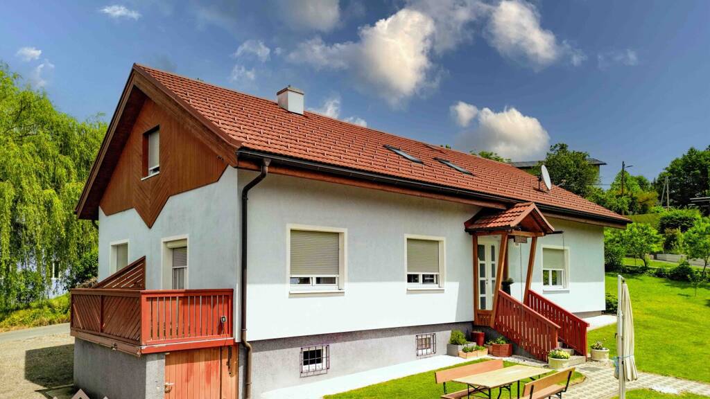 Das gepflegte Wohnhaus (perfekt geeignet auch als Zweifamilien-Wohnhaus) mit einem kleinen Teil des Gartens wurde in den letzten Jahren um eine Einliegerwohnung erweitert.