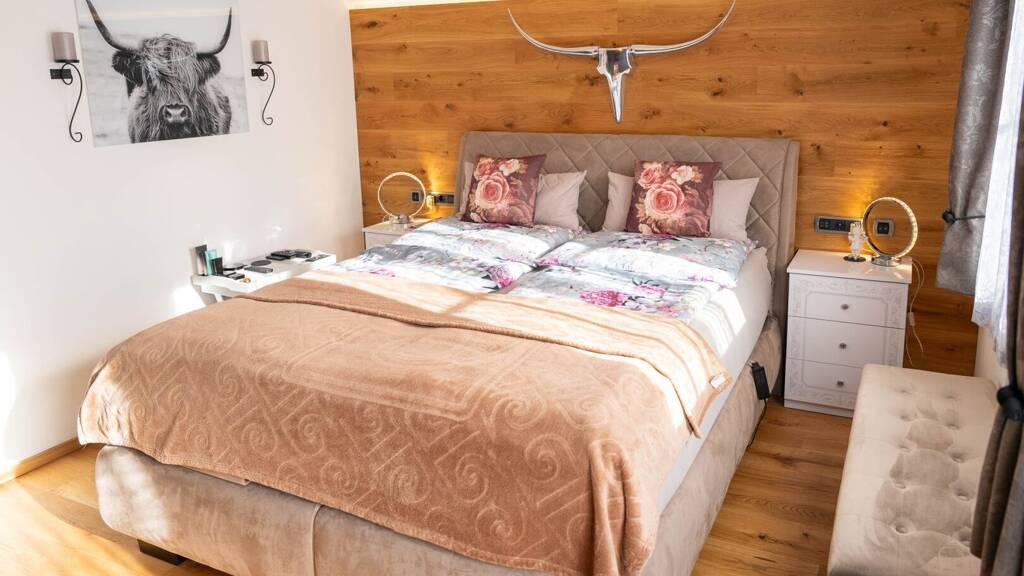 Das Dachgeschoss überzeugt mit einem Elternschlafzimmer samt Schrankraum, zwei Kinderzimmern und einem Büro das als zusätzliches Kinderzimmer genutzt werden kann. Zwei moderne Badezimmer - eines für Kinder und eines für die Eltern. Ein besonderes Highlight ist der ca. 9 m² große Süd-Balkon mit Blick auf Asitz und Steinernes Meer, der zum Entspannen einlädt.